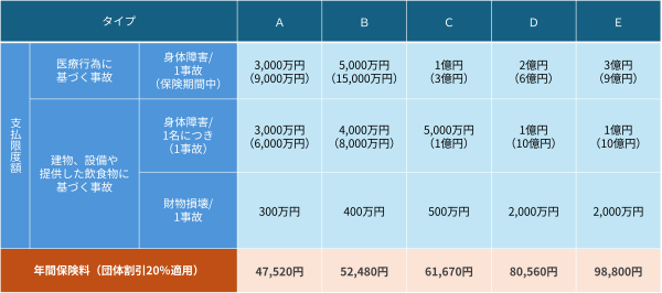 - 日本医師会A会員の先生方は、日本医師会の医師賠償責任保険に加入されておりますので、この保険にご加入いただけません。